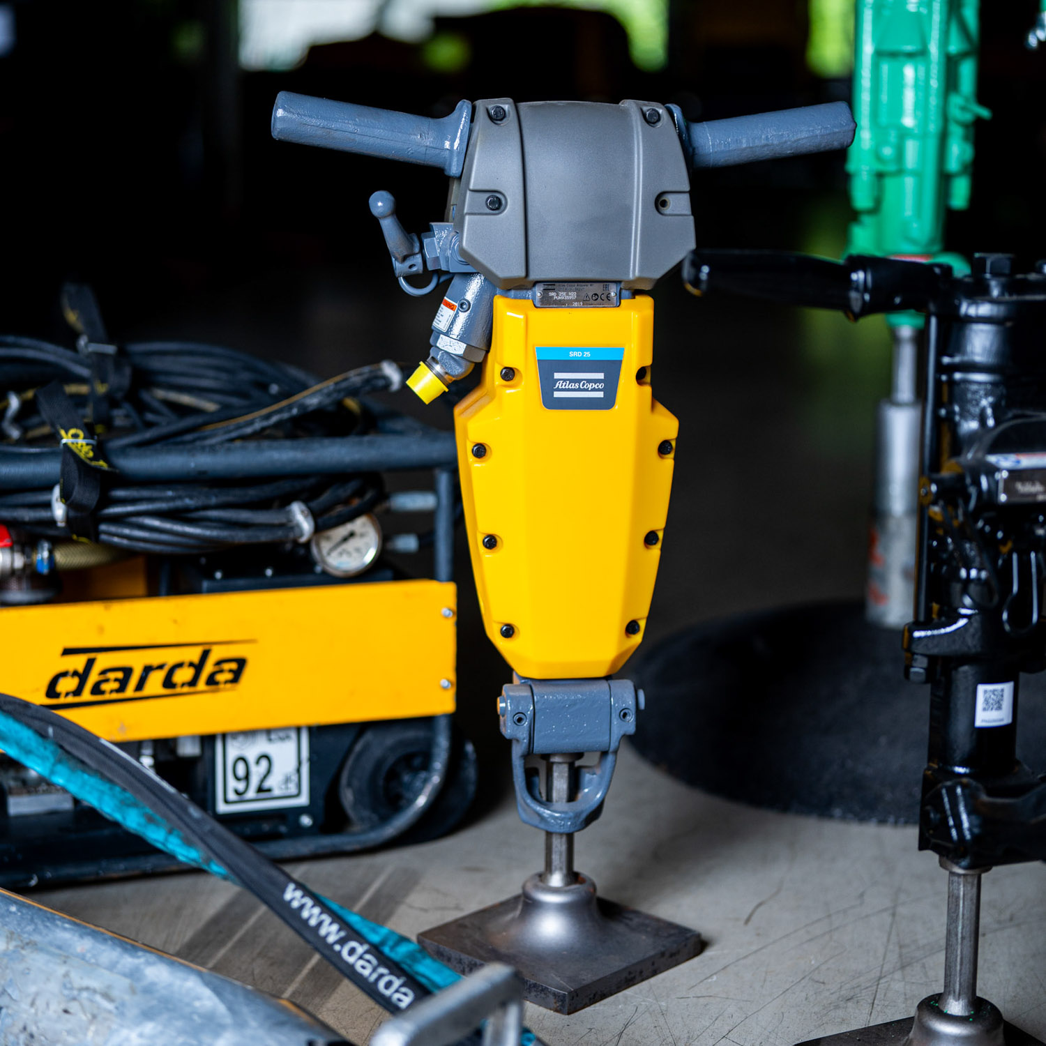 Trykkluftsdrevet bergboremaskin med innebygd luftspyling.