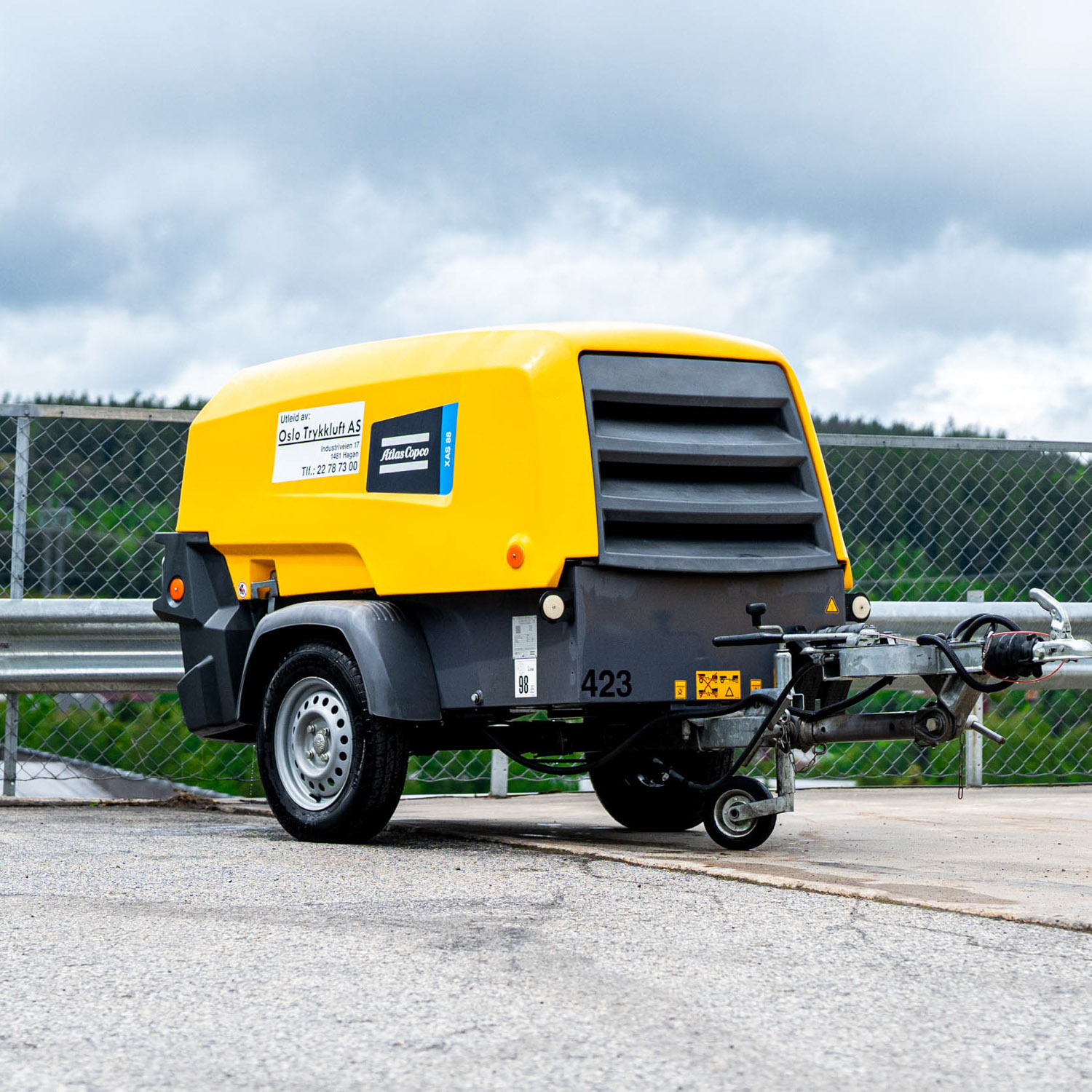 Kompressoren veier 750kg, og kan trekkes med bil på B-sertifikat.